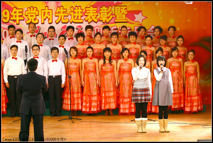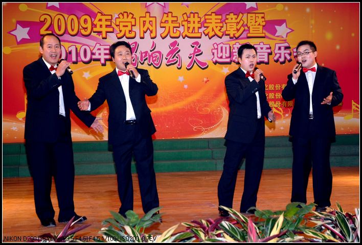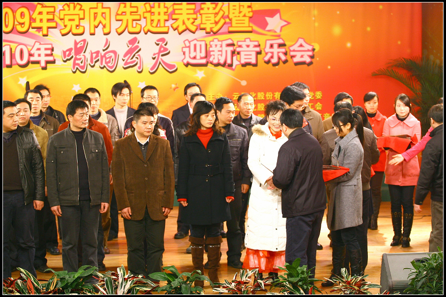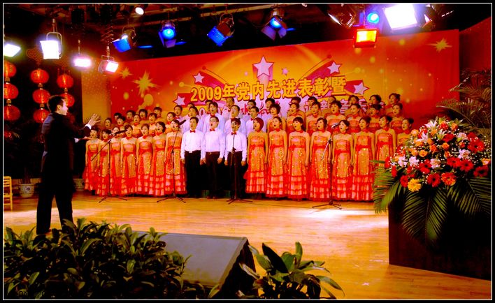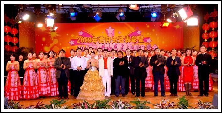 1月9日晚,电视演播厅内气氛热烈、歌声飞扬,由公司党委、工会和音乐协会精心准备的2009党内先进表彰暨2010迎新音乐会在这里隆重上演。晚会上,公司党委对2009年度党内先进个人和集体进行了表彰颁奖,同时音乐爱好者们更以一曲曲悠扬的歌声表达了对公司的热爱之情和对全体员工家属的深深祝福。