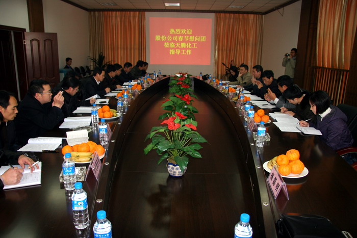 慰问中,刘富云深入天腾、天安及昭通天合生产一线进行现场视察。每到一处,刘富云都详细询问生产,了解装置的运行维护、产品产量、原材料供应等情况。在对生产的关注中透露着公司领导心系2010年生产、谋划经营发展的悠远深意。