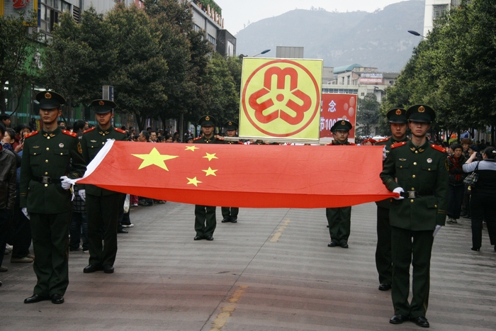 8日下午,尽管天公不作美,下起了零星小雨,但这丝毫没有影响大家的参与热情,由水富县各单位和协会团体组成的19个女工方队穿上节日的盛装,从人民东路出发,经过滨江路到春晖广场进行游行表演。鲜艳的五星红旗、活动的主题牌、妇联会徽在仪仗队的高擎下走在队伍的最前列,五颜六色的腰鼓队、扇子队、花环队、鲜花队紧随其后。