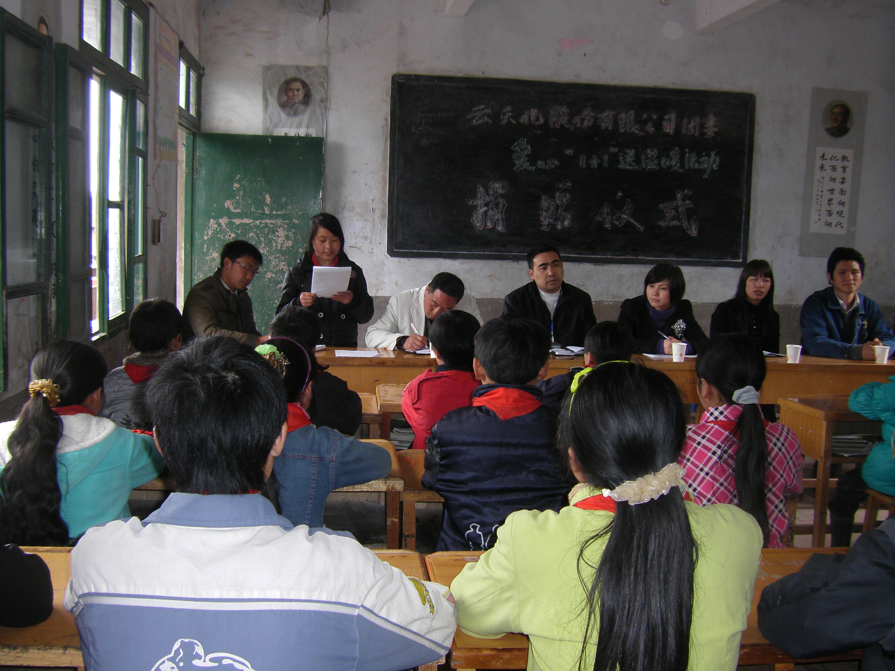 崎岖的山路,陡峭的悬崖,淹没脚背的泥泞,这就是进入三角村小学唯一的一条道路。公司团员青年们驱车行进近6个小时才到达目的地。到达三角村小学后,首先映入眼帘的是教学楼破旧的门窗,而此时早已等候在学校门前的师生们更是满怀纯洁的笑容列队欢迎公司团委一行的到来。