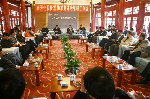 为及时总结2009年公司综治维稳工作取得的经验成绩,推进2010年综治维稳工作的开展,4月16日下午,公司2010年度社会治安综合治理暨维稳工作会在圆中园会议室召开,公司领导刘富云、梁洪、冯驰以及各基层党支部书记和水富县相关单位领导参加了会议。