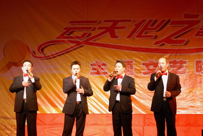 随后,一个个精彩的节目陆续登场,将群山环抱中的春晖广场妆点得流光溢彩。健美操《魅力无限》充满时代气息、热情动感;相声《我的英雄梦》故事情节生动、表演幽默诙谐;舞蹈《大秧歌》队形灵活多变,展现出老年人老有所乐、老有所养的幸福生活;音乐快板舞《厂县一家亲》节奏明快,由水富县和公司演员同台演出,将公司的管理文化与水富县的和谐社会建设巧妙的融入在一起;音诗画《金江晨韵》朗朗上口,现场书法和绘画更展现出云天化中学深厚的文化底蕴。大合唱《云天化之歌》《草原之恋》激情豪迈、宁静悠远,将公司波澜壮阔的创业发展史给予了最完美的诠释;四重唱《回娘家》《祖国不会忘记》、组合唱《下个路口见》、舞蹈《国风》等节目也都各具特色、令人目不暇接;最后歌伴舞《阳光路上》将晚会推向了高潮。