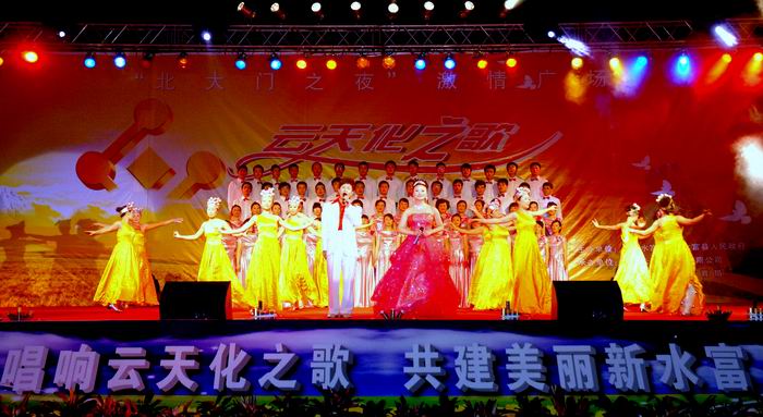 晚会由水富县委、县政府主办,云天化承办。晚会开始前,公司纪委书记、工会主席梁洪代表公司发表了热情洋溢的讲话。梁洪在讲话中,表达了云天化一定会继续以一流的管理、一流的人才、一流的产品、一流的服务回报国家、股东和员工的决心,并抒发了厂县一家亲,携手共建新水富的美好愿望。水富县县委副书记胡江惠也代表水富县委县政府发表了讲话。