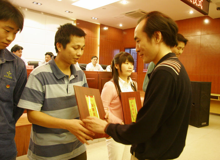 公司总经理刘和兴为“最佳进步团支部”获得者颁奖