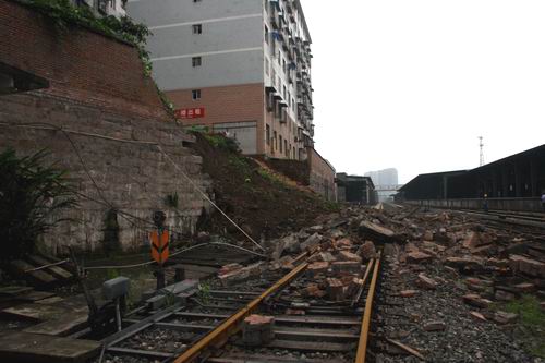 记者来到事发现场,只见公司铁路专用线南侧一居民还建房后的围墙中段出现近50米的一处塌方,散落的石头、砖块、泥巴全部滚落到位于其下方的公司铁路专用线上。公司经营部、安全环保部、工程部、设备部、消防部等单位人员正在现场查看,了解情况。