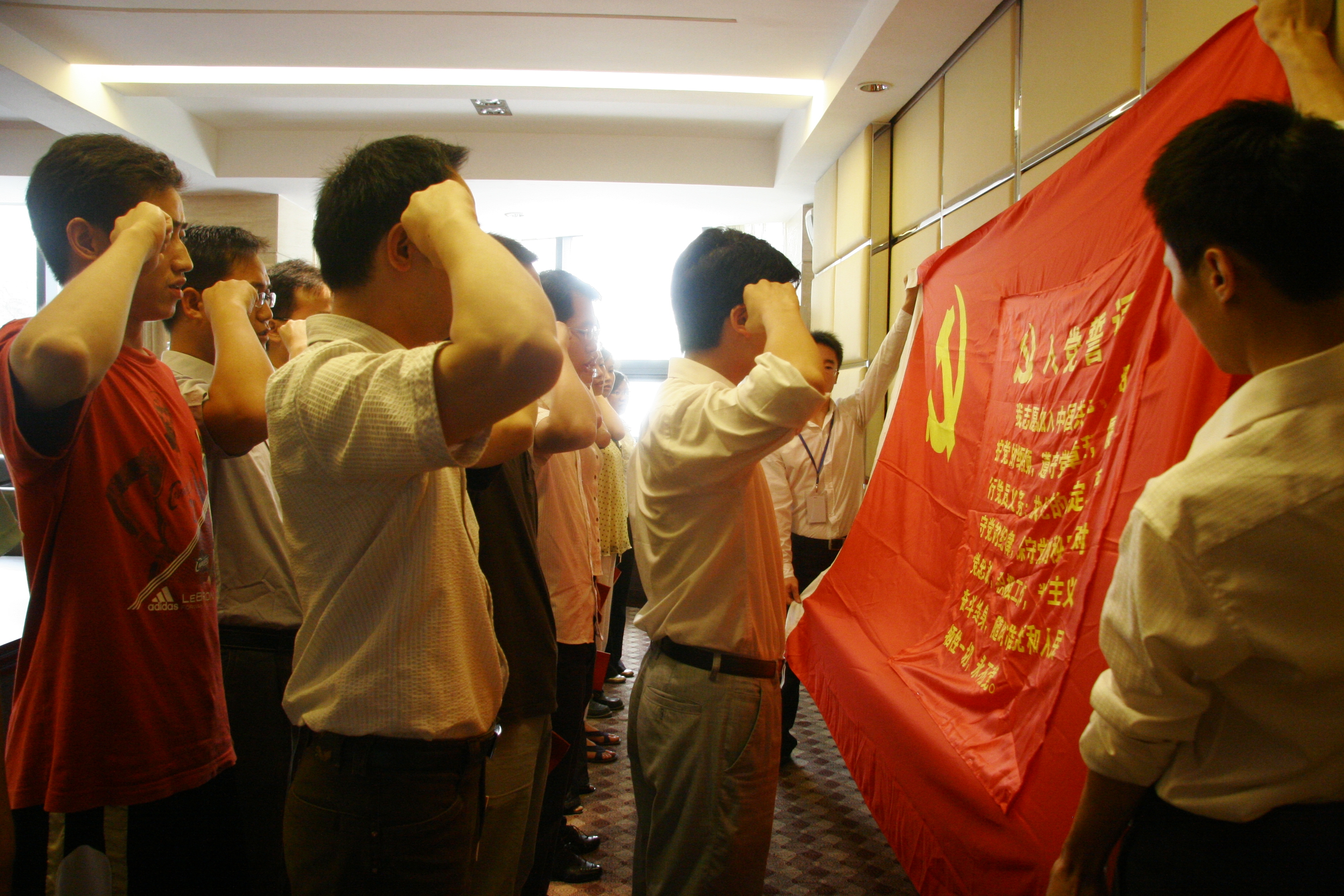 6月30日下午,宣誓仪式在宾馆一会议室举行,公司2010年新加入中国共产党的26名党员面对鲜艳的党旗,庄严地宣读了入党誓词。