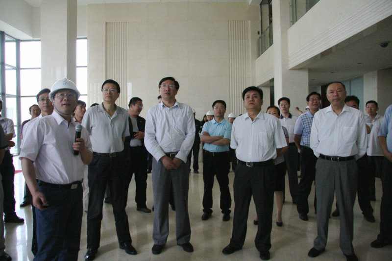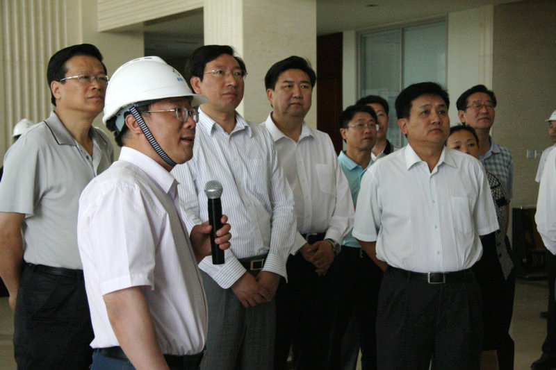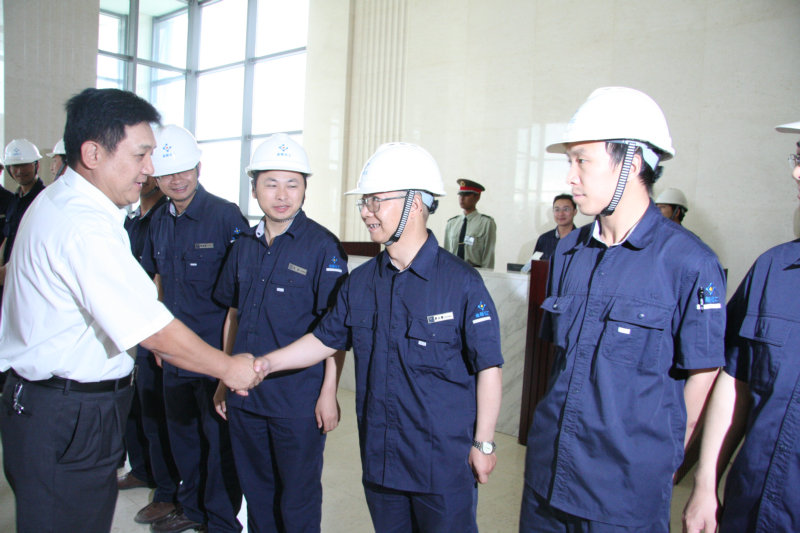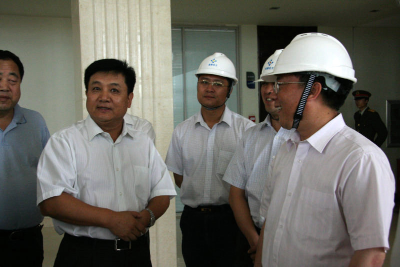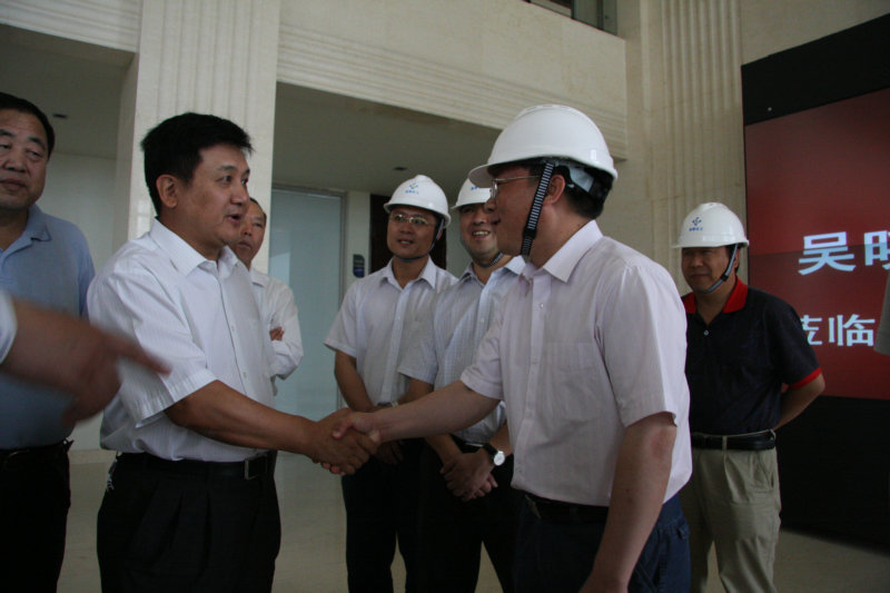 国家环保部副部长吴晓青一行首先驱车了解了金新化工项目建设的情况。随后,吴晓青部长来到金新化工办公楼大厅,他与在此等候迎接的中层干部一一握手,并听取了金新化工环保设施建设汇报。