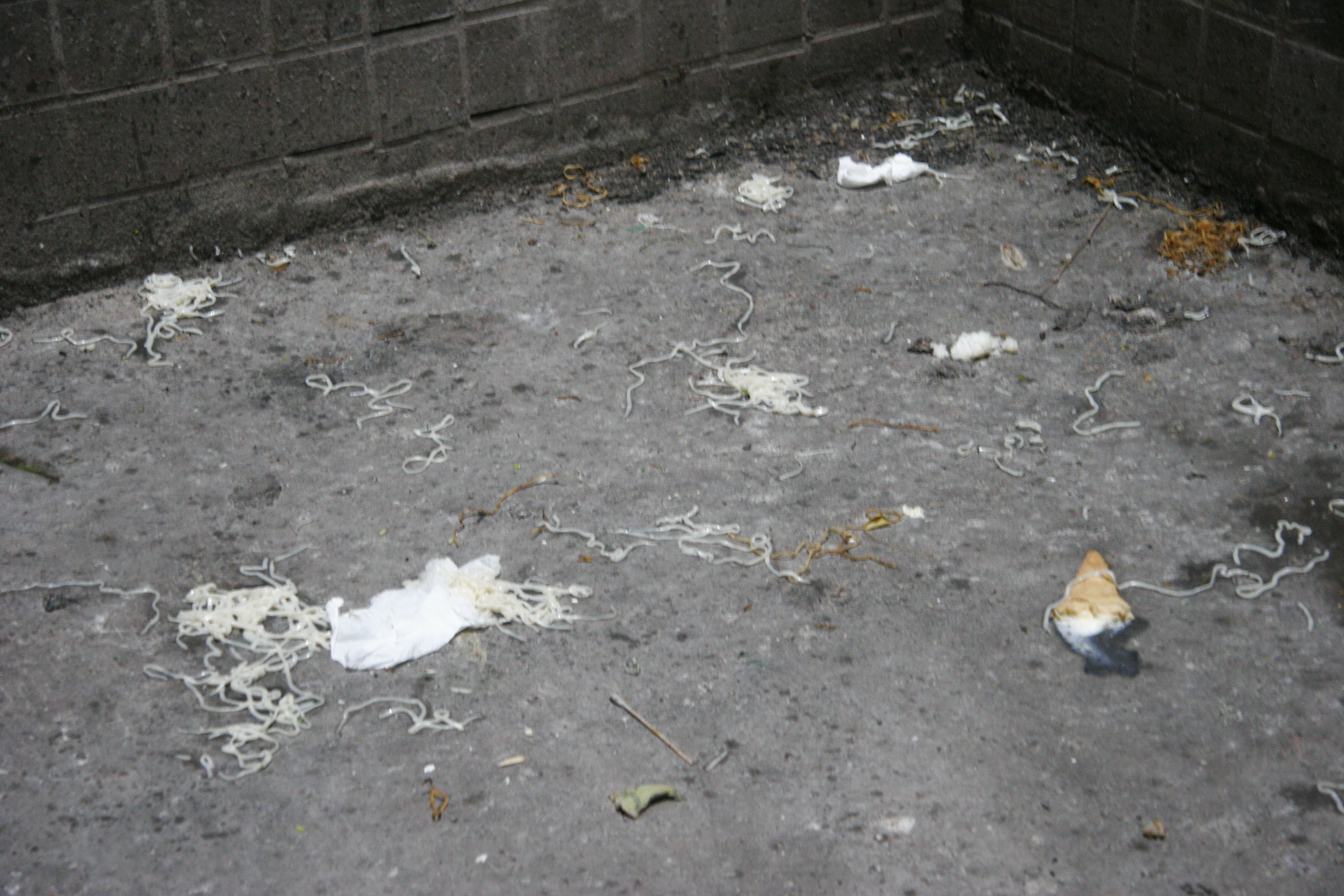 记者在采访过程中也发现,高楼住户高空抛物、乱扔垃圾的现象仍然存在。在衡阳、丹阳楼三楼平台上,方便面盒、剩饭剩菜、烟头纸屑等垃圾和生活废水随处可见,大厅顶部的玻璃也由于高空抛物发生碎裂。