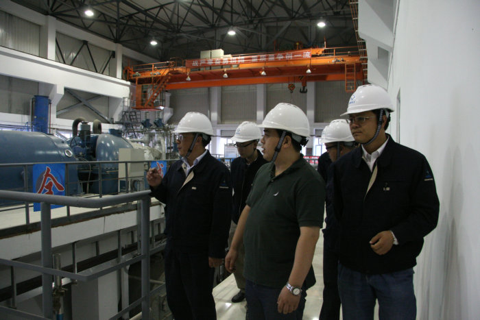 前夜的一场大雨让项目建设现场道路十分泥泞,刘和兴总经理从热电主厂房开始,沿着泥泞的道路对煤气化、水系统、尿素、合成、空分装置的施工情况进行了深入了解。在除盐水厂房,了解到原水装置、除盐水装置已经试车成功,刘和兴总经理很高兴,他希望项目建设人员要为其他装置的顺利试车而不断努力。
