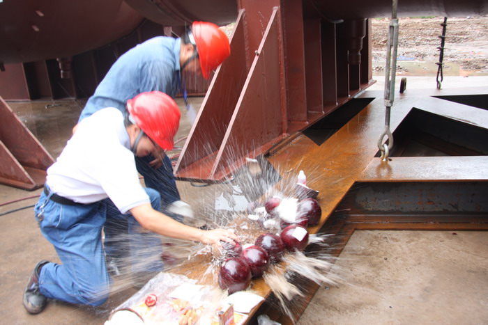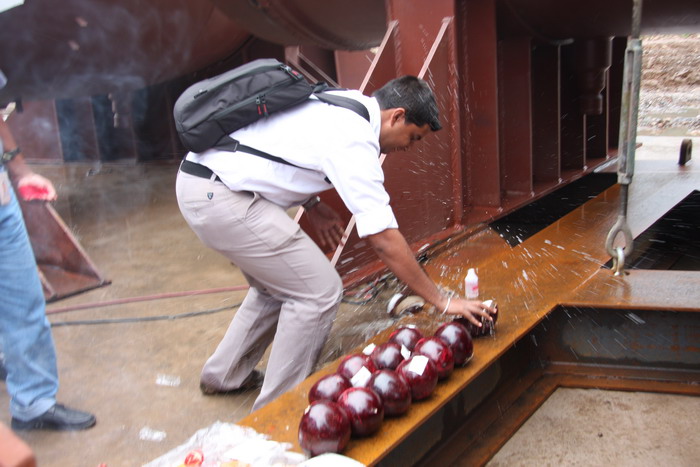 气化核心设备运抵现场后,公司物资部、工程部、煤化工指挥部、印度L&T技术人员等立即召开协调会,对设备检验时间、顺序、注意事项等进行了沟通,并于9月7日早上举行了开箱检查验收祈祷仪式。