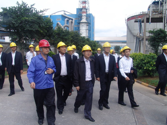 2010年9月17日14:00,云天化国际三环公司纪委书记、工会主席解甲德,党委工作部李部长、人力资源部石部长等领导陪同学员参观三环公司生产现场。