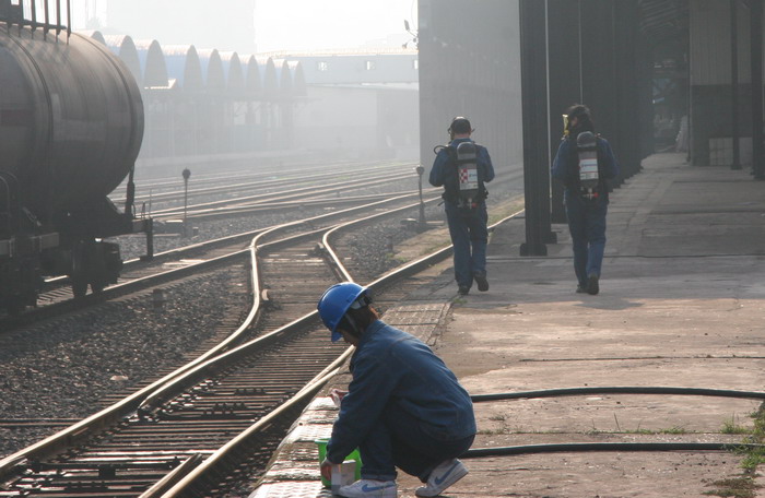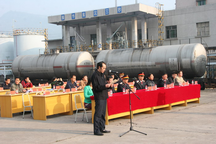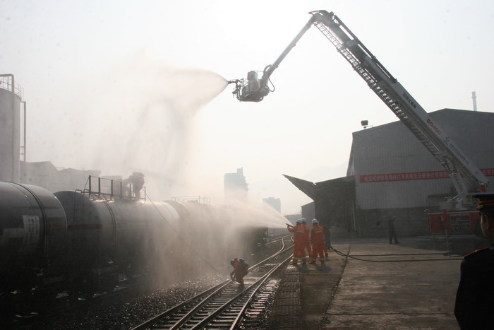 危险化学品在运输途中一旦发生事故极易造成重大的人身伤亡、财产损失和环境污染。为了保障危险化学品在运输途中发生险情事故时,能够最大限度的减少损失。11月5日上午,成都铁路局内江车务段与公司联合举行了一次液氨泄漏应急救援演练。