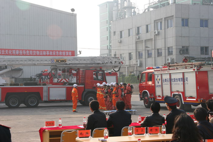 此次演练是由云天化股份有限公司和内江车务段首次联合组织进行的液氨泄漏应急救援演练。演练参演人员上百人,西南片区从事危险化学品生产的多家企业也前来观摩演练。