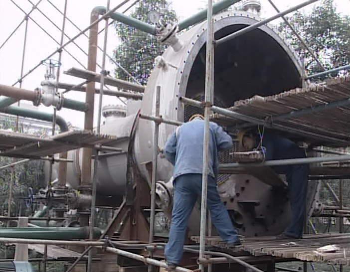 硝铵装置氧化炉更换项目由于受到工机具因素的影响,吊装工作可能要推迟近10天的时间,目前,新氧化炉的水洗、碱洗和酸洗工作已经完成,旧氧化炉相关管线的切割和拆卸工作正在紧张进行。