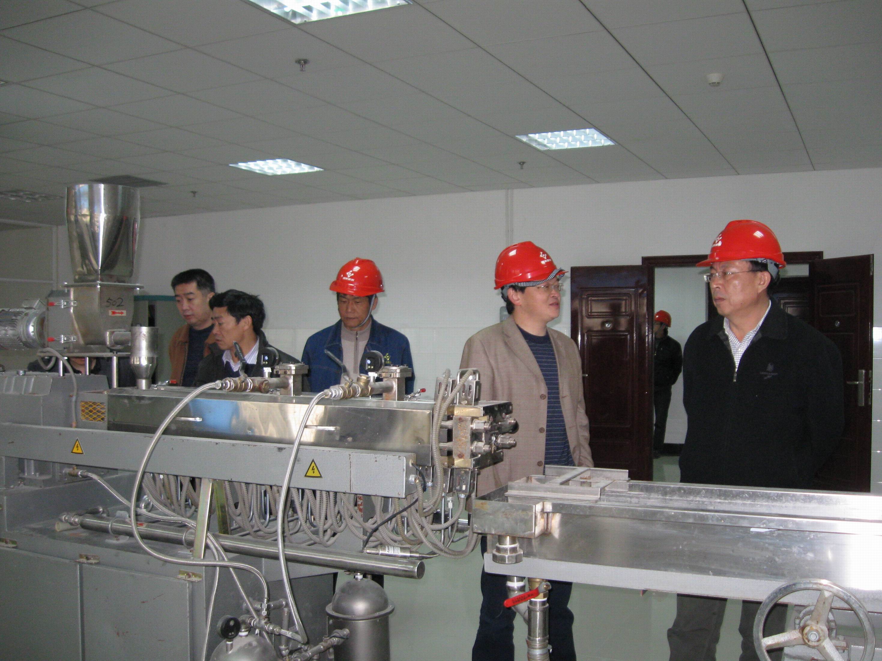 在CPIC党委书记、副总经理段文瀚,重庆分公司常务副总经理张玉杰,重庆分公司党总支书记、副总经理罗勇,纽米科技常务副总经理王志春,研发中心副主任普雪涛等的陪同下,张嘉庆一行首先到纽米科技隔膜项目施工现场实地勘察了项目厂房建设情况,了解了项目施工进度,并视察了研发中心分析化验室、挤出机、老化设备等设施安装使用情况。