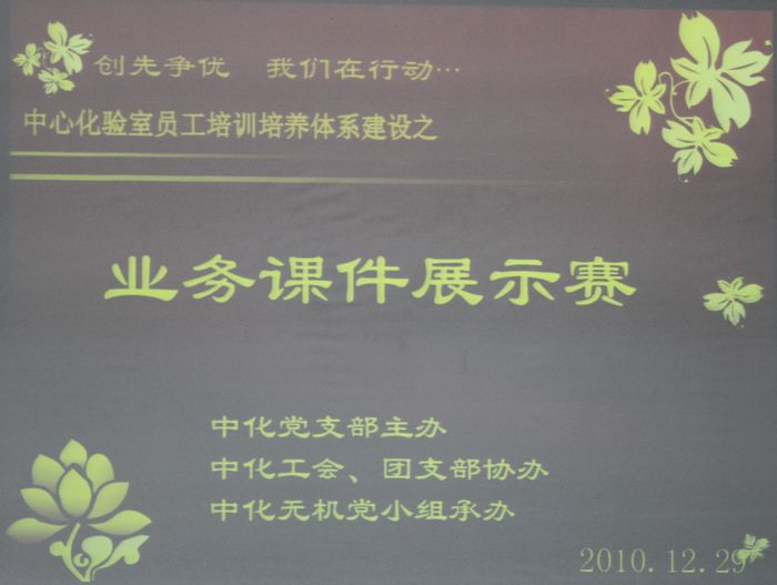 据了解,业务课件的开发是中心化验室结合自身人手紧缺,分析点多面广,学岗员工所占比例较大的情况下,不断开拓完善自身培训体系建设的一项新举措。该项工作于2010年年初启动,由化验室各岗位的青年骨干、后备人才、岗位能手在一年期内完全利用业余时间开发,经班组、技术组、化验室领导多次反复修改校正完成,是中心化验室集体智慧结晶。此次共开发28个业务课件,涵盖中心化验室所有岗位。该项活动通极大地促进了员工主动学习、主动思考的能力,有效地提升了业务操作技能。