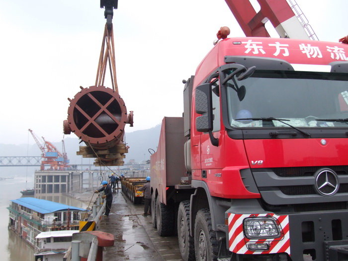 15日中午,E15401顺利抵达水富码头,相关单位协同作战,积极展开了吊卸、转运和道路护航等工作。在相关单位的共同努力下,设备于下午15:10分顺利吊卸上岸,并于当天安全转运至施工现场,圆满地完成了最后一批大件设备的接转运工作。