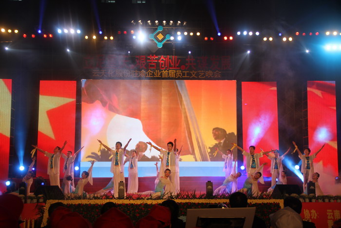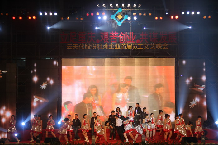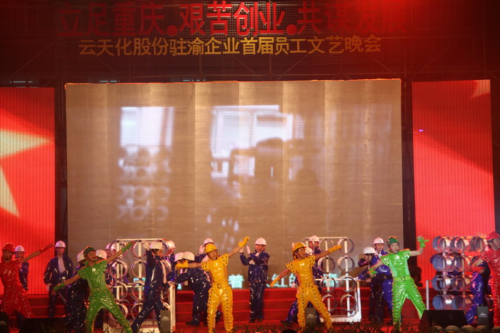 为充分展示云天化股份驻渝企业开疆拓土、干事创业的丰硕成果,共享成功喜悦,提振精气神,共谋发展大计,2010年1月22日晚,CPIC、重庆分公司、天勤材料、纽米科技、研发中心、天盟连锁重庆分公司六家单位的干部员工1000余人共聚一堂,隆重举行场面盛大的“立足重庆 艰苦创业 共谋发展 云天化股份驻渝企业首届员工文艺晚会”,以此讴歌云天化股份驻渝企业十余年来取得的辉煌业绩,表达了云天化股份驻渝企业对美好未来的无限憧憬。
