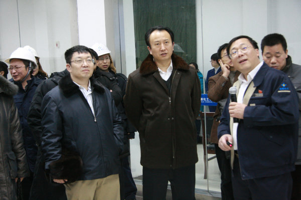 国务院发展研究中心资源与环境政策研究所课题组领导在驱车了解的项目现场情况后,金新化工总经理陈大文在空分主控室汇报了金新化工项目建设进度、工艺原理、环保设施等情况。课题组的领导就金新化工的煤资源、市场、投资规模等问题与总经理陈大文进行了交流。