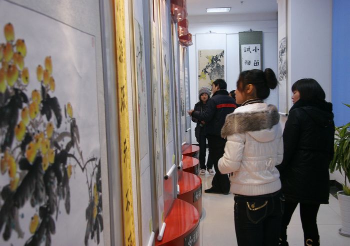 绘画作品全部由公司书画协会会员所著,包括36幅书法、27幅国画、3幅西画作品。作者随心而发,以画言志。写意国画“东篱雅趣”主题突出,合理的布局反映出作者对悠闲生活的追求;工笔国画开口“石榴”象征着硕果累累,笑口常开的生活;对联“心如秋水”给人的感觉清爽干净,反映出作者对待生活那种平静心情;自创古体诗书画“春城三五夕”,字体别具一格,浑然一体,表达出作者对故友的深深思念;“古藤”的浪漫,“牡丹”的雍容,描绘出春天脚步的临近。浓墨重彩,轻描淡写的这些作品在给公司广大员工家属补上文化课的同时,也赢得了观赏者的高度好评。