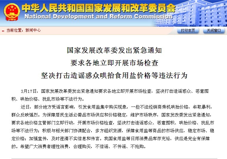 对于本次抢购食盐的原因和消息来源,有关部门正在调查之中。但广大市民基本上都是道听途说,因为恐慌,跟风就加入了抢购的行列。