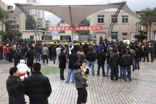 活动现场摆放了反对邪教、道路交通安全、治安管理、消防安全等各类宣传展板130余幅,吸引了很多群众驻足观看。而由青年志愿者宣读《水富县关于支持见义勇为事业的倡议书》并宣誓的环节更是慷慨激昂,再次勾起大家内心对见义勇为英雄的崇敬之情,和弘扬社会正气的决心。参加此次活动的青年志愿者和驻水富武警官兵纷纷讲出了自己对于见义勇为精神的理解及投身其中的决心。