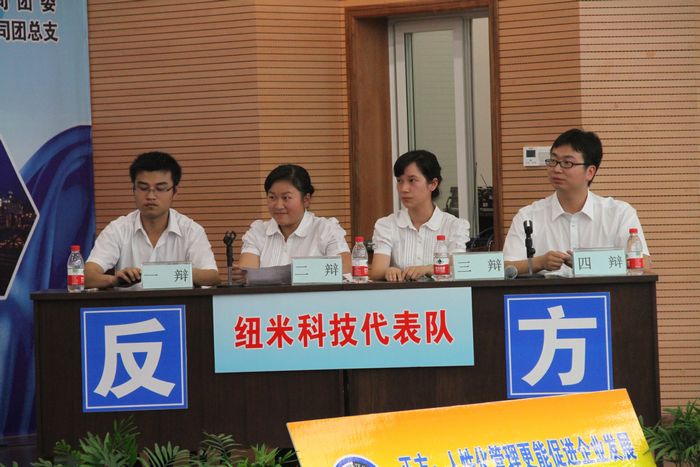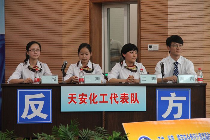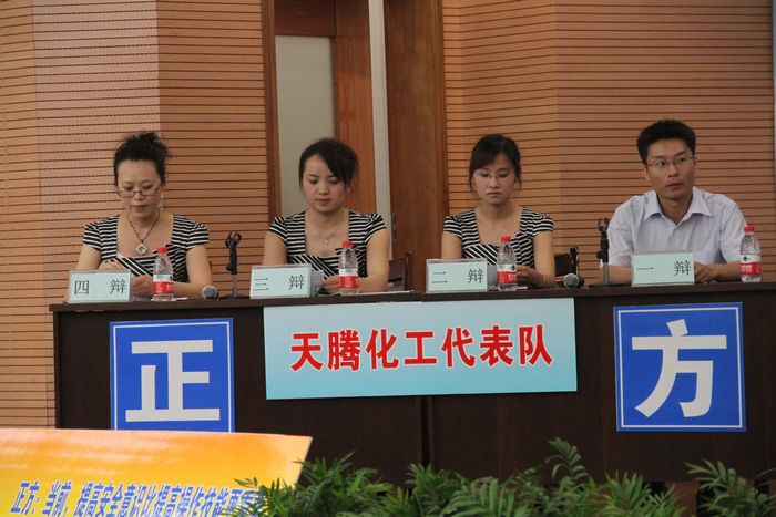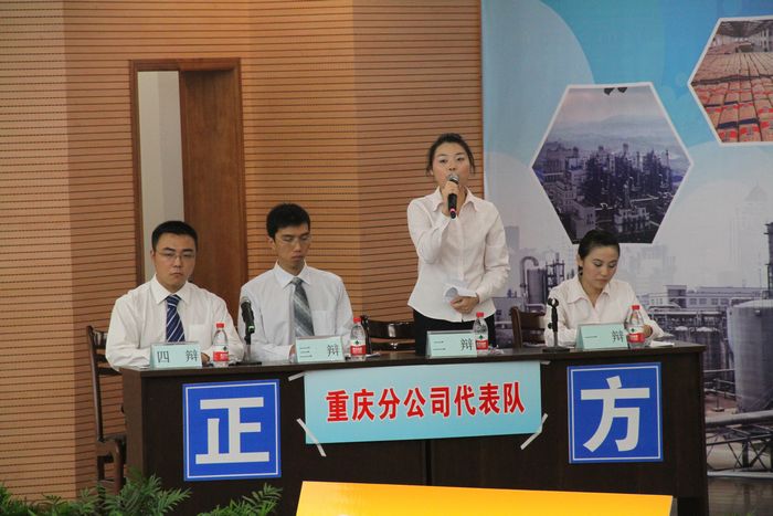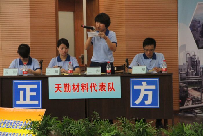 纽米科技和天勤材料代表队就“人性化管理更能促进企业发展” 还是“制度化管理更能促进企业发展”的辩题开始了第一场的辩论比赛。天腾化工和天安化工代表队就“安全意识与操作技能孰轻孰重”,重庆分公司与CPIC代表队就“青年人走向成功的关键在于外部平台还是自身努力”进行了第二场和第三场比赛。