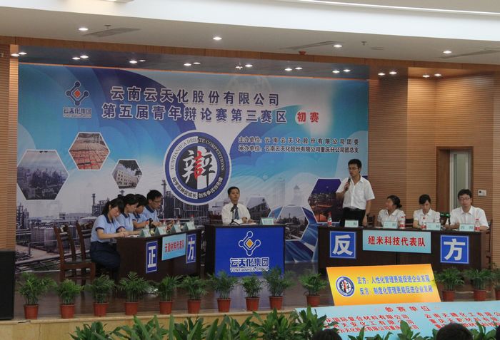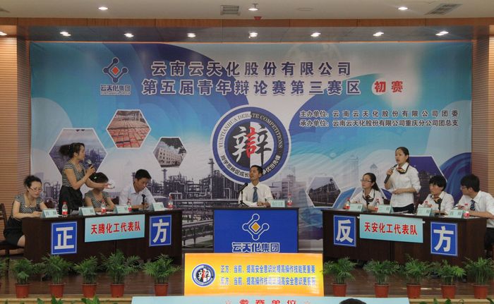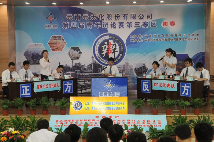 当天晚上,重庆研发中心的学术报告厅座无虚席,来自公司重庆片区200余名员工及集团、股份团委,部分子公司的领导观看了本场比赛。辩论赛在《云天化之歌》激情的旋律中拉开序幕。重庆分公司党总支书记、副总经理罗勇,股份公司团委副书记李天会先后上台致辞,预祝辩论赛取得赛圆满成功。