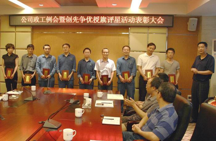 6月3日下午,公司在云天宾馆一会议室召开政工例会,公司党委领导刘富云、梁洪、党群部门负责人、基层各党支部书记参加了会议。会上对近期党建工作进行了安排部署,并根据创先争优授旗评星工作的总体要求,对优秀党支部和优秀共产党员进行了授旗表彰和星级评定。