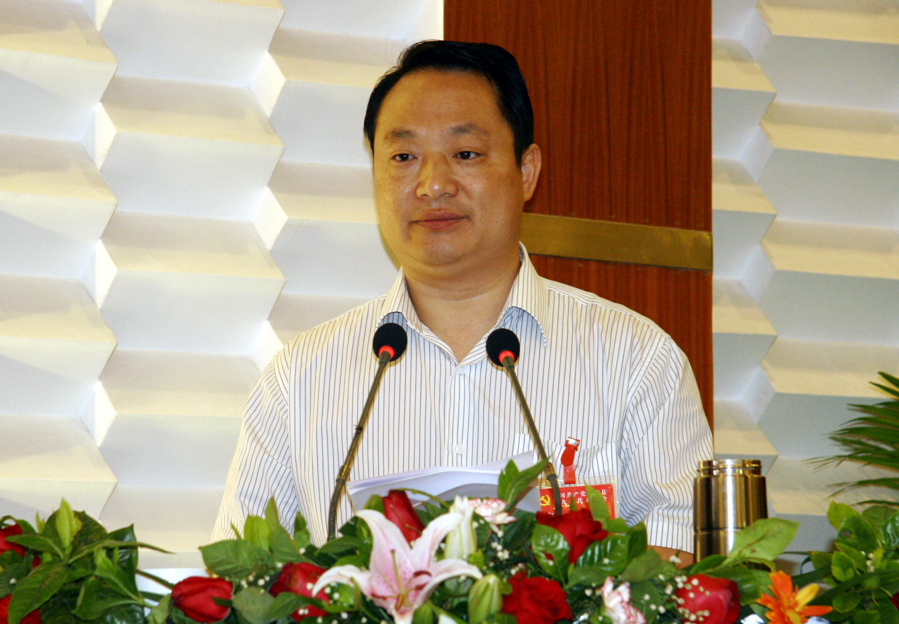 水富县委书记郎学超代表中国共产党水富县第八届委员会向大会作工作报告