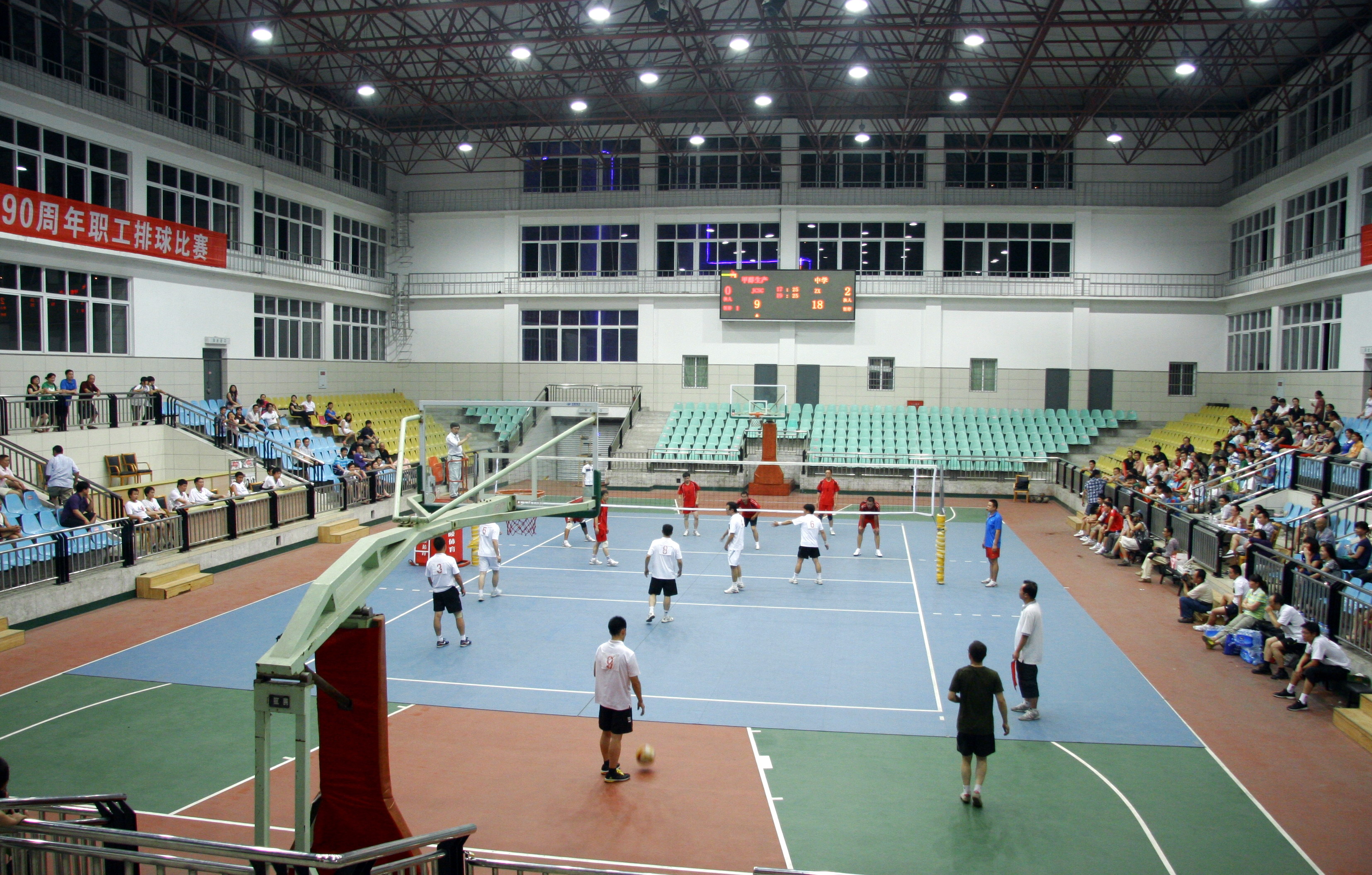 向建党90周年献礼公司职工排球赛男排决赛于6月12日晚精彩上演,在首先进行的三、四名争夺中,物资党群联队战胜检修代表队获得季军,而中学代表队则完胜甲醇生产联队勇夺桂冠。