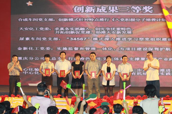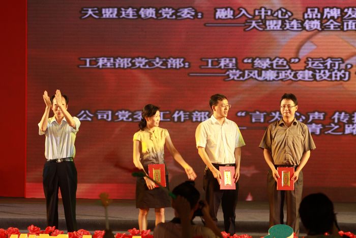公司党委副书记、纪委书记、工会主席梁洪为“2009-2011年公司先进党支部”获得者颁奖