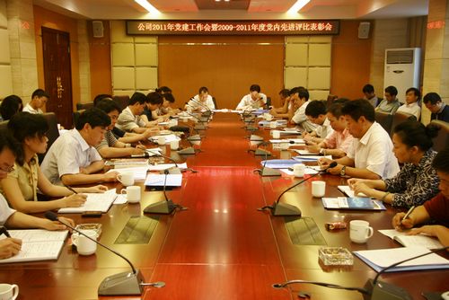 在中国共产党成立九十周年之际,公司组织召开2011年党建工作会暨2009年7月-2011年7月党内先进评比大会。大会对公司两年来党建工作、当前国内外形势及国企党建新要求进行了总结和分析,对下阶段公司党建工作提出了新要求,对两年来公司涌现的先进党组织、优秀共产党员进行了评比,对优秀党建和思想创新成果进行了发布。公司党委书记刘富云,总经理、党委副书记刘和兴,党委副书记、纪委书记、工会主席梁洪及公司各级党组织负责人出席了大会。