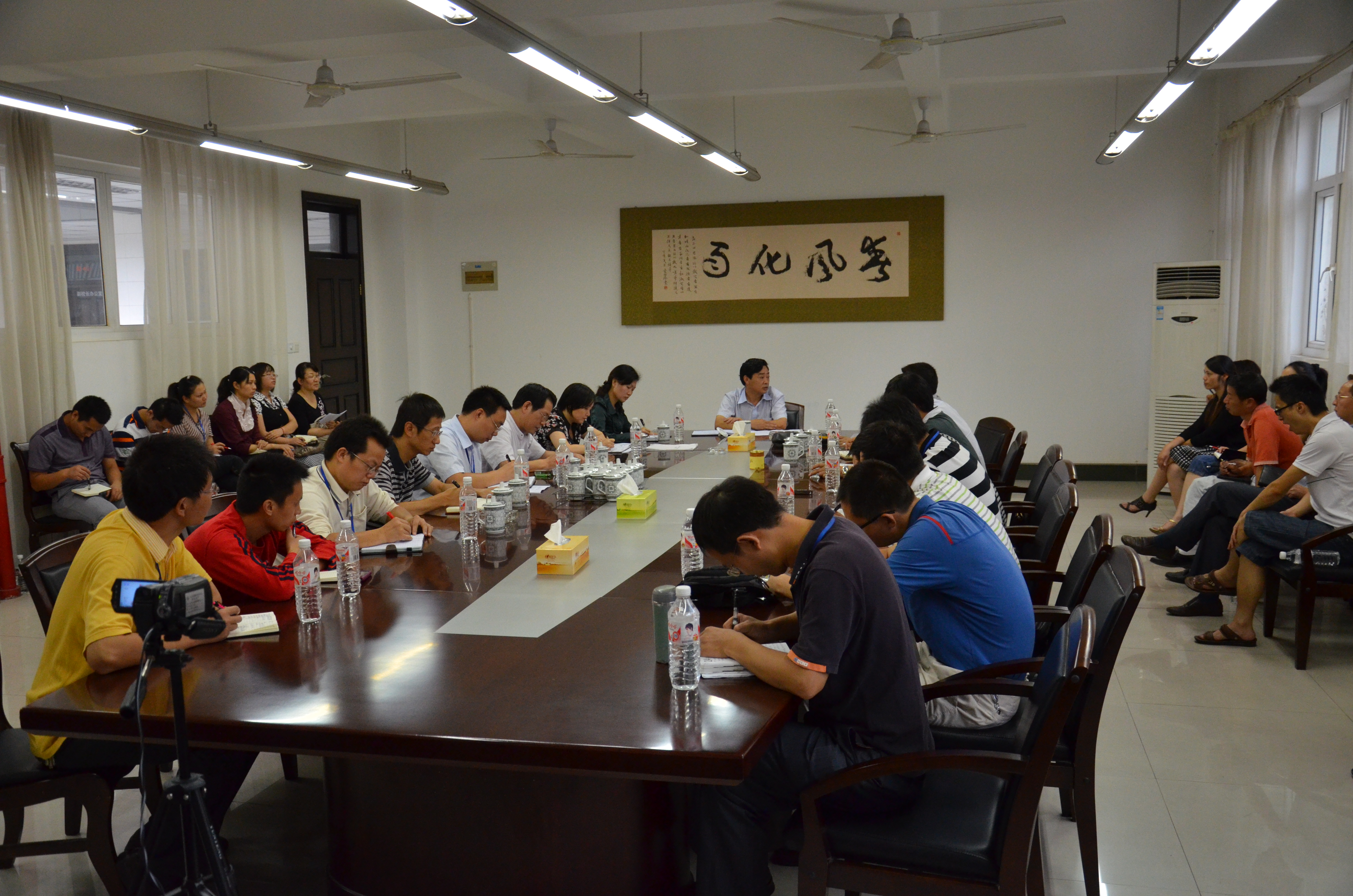 最后,刘书记还对学校领导班子进行了综合评价。刘书记说,学校领导班子在磨合、继承、突破、创新方面做得很好,是一个团结拼博,志存高远,有思想,有行动的班子,工作成效显著,整体令人满意。但学校当前面临的形势和任务,要求学校战略策划要进一步清晰,基础管理要进一步系统,讲求有效性和科学性,健全激励约束机制,机制运行要有互补。刘书记还要求学校要建立学习型团队,领导干部和教师队伍都要自主加强学习、勇于开拓进取,积极探索和拓展学校发展的道路。