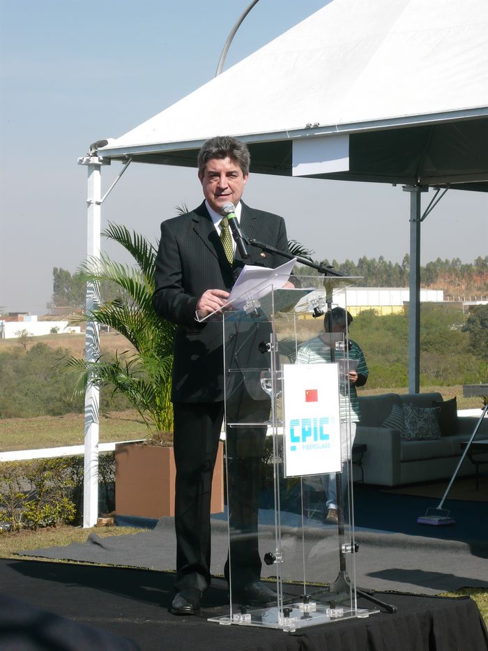 巴西卡皮瓦里市市长Luis Donisete Campaci在仪式上讲话