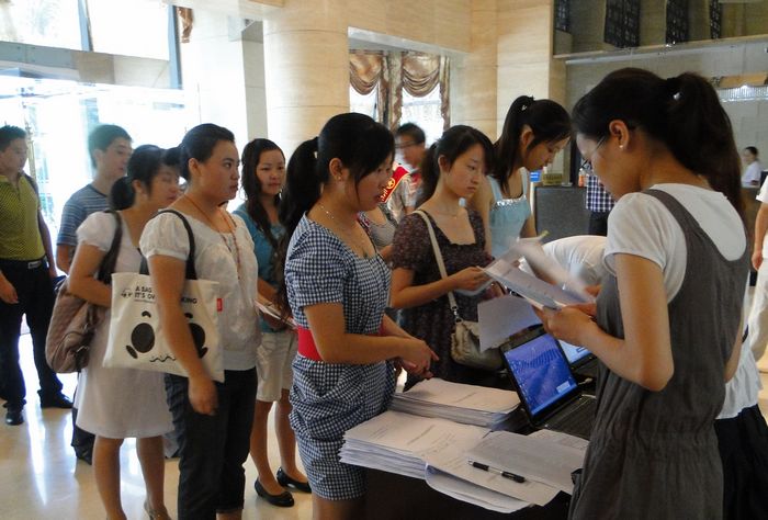 的学子的报到创造了极佳的条件。上午8时,之前抵达公司的新员工在云天宾馆大厅排起了长队,他们手拿毕业证,精神焕发,等待登记注册。