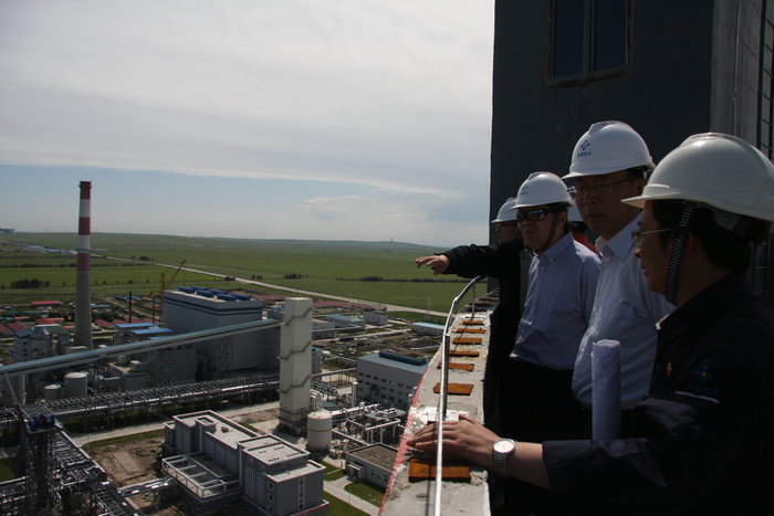 云南省国资委主任徐盛鹏在造粒塔俯瞰项目建设现场
