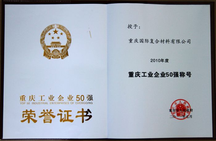 8月11日下午,重庆市工业经济考核办公室召开了2011年度重庆工业10强区县和工业50强企业新闻发布会。在 “重庆工业企业五十强”评选中,CPIC凭借2010年优异的经营业绩,荣获2010年度“重庆工业企业五十强”称号,这是CPIC继去年获此称号之后再次获得该荣誉,今年以较强的实力在50强中排名第14位,较去年上升2位。