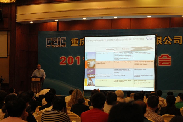 会上,CPIC总经理助理、市场部部长唐初平和CPIC副总经理任冬友分别作了《实施国际化“走出去”战略》和《2010-2011年CPIC玻纤新产品介绍》的主题发言。中国复合材料协会秘书长吕琴就中国复合材料工业在“十一五”期间取得的成就与“十二五”的展望发表了演讲。在交流会上发言的还有来自科研单位的专家及海内外的客户代表。