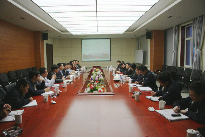 股份公司党委书记刘富云在金新化工一会议室听取项目建设和党建工作情况汇报