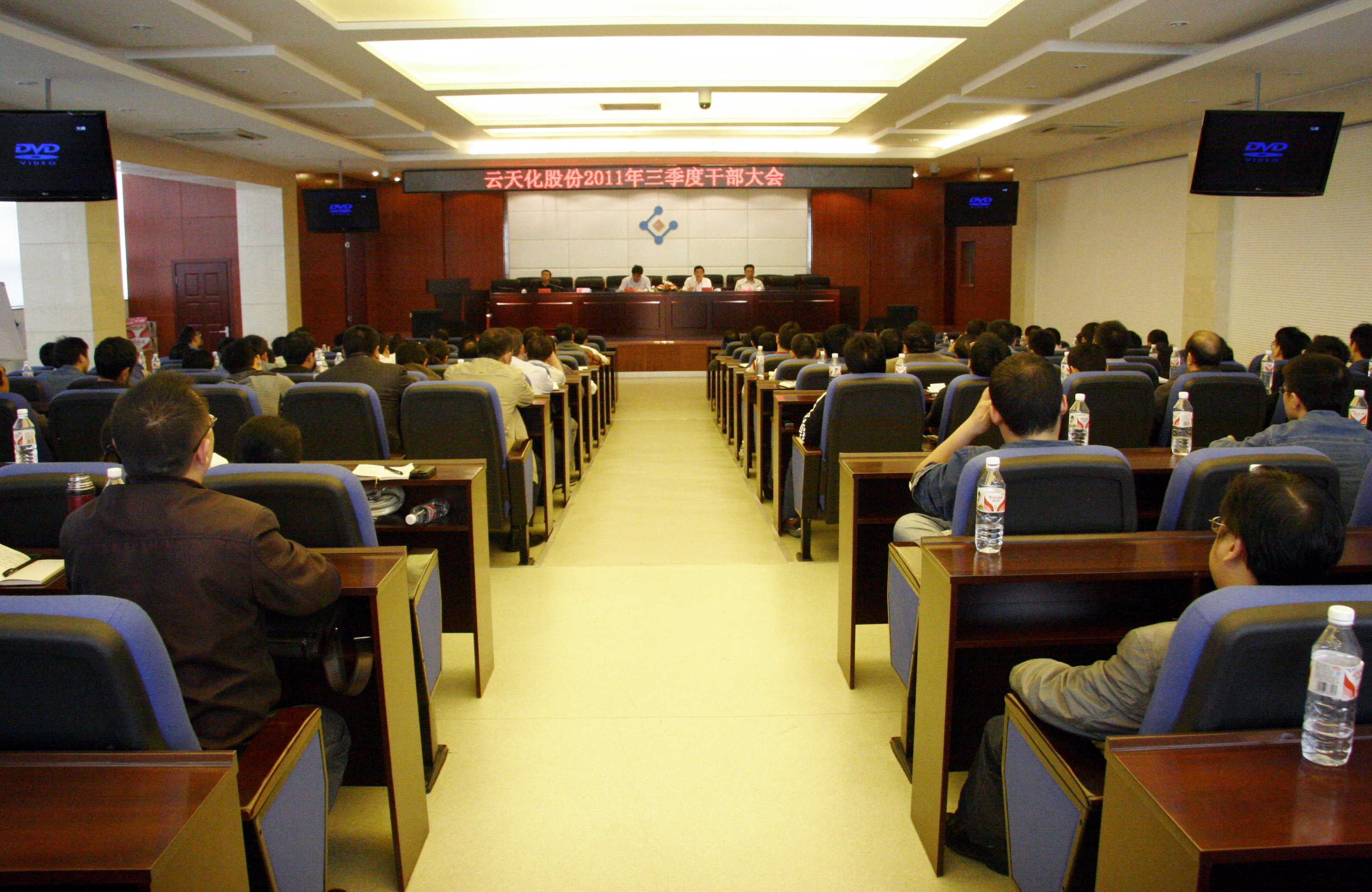 9月30日上午8:30,云天化股份2011年三季度干部大会在工会会议厅召开。公司总经理刘和兴、党委书记刘富云分别作重要讲话,对生产经营面临的新形势及发展方向进行全面的分析,指出当前公司在变革、发展及转型过程中存在的问题,部署年终各项工作,并对公司干部队伍提出了新的要求。