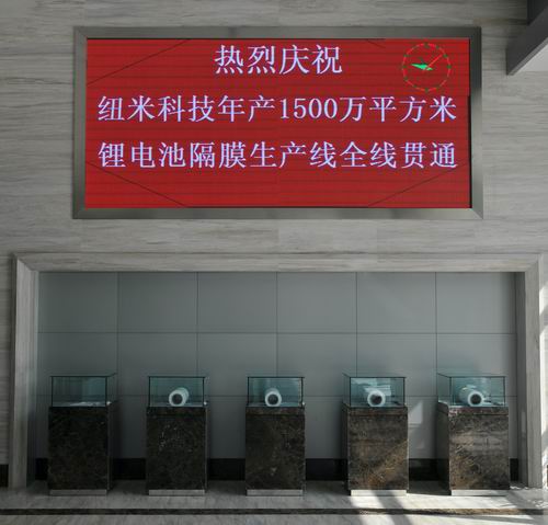 2010年8月开始土建施工,2011年9月24日全线贯通、10月28日正式投产,短短13个月时间,纽米科技创造了一个奇迹:自主设计中国最大、配置最先进、性能指标最好、产品品质达到国际同类产品水平的一条高性能湿法锂离子电池隔膜生产线。它的投产是公司“十二五”开局之年的一件大事,也是公司“转方式、调结构”道路上一个里程碑似的标志事件。