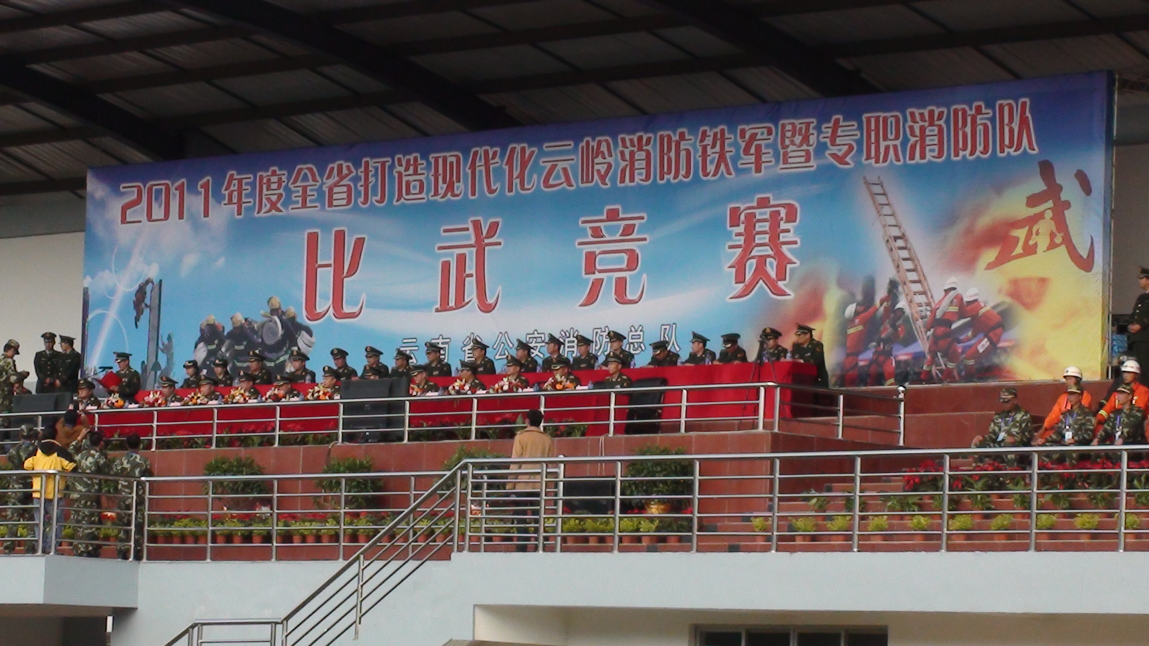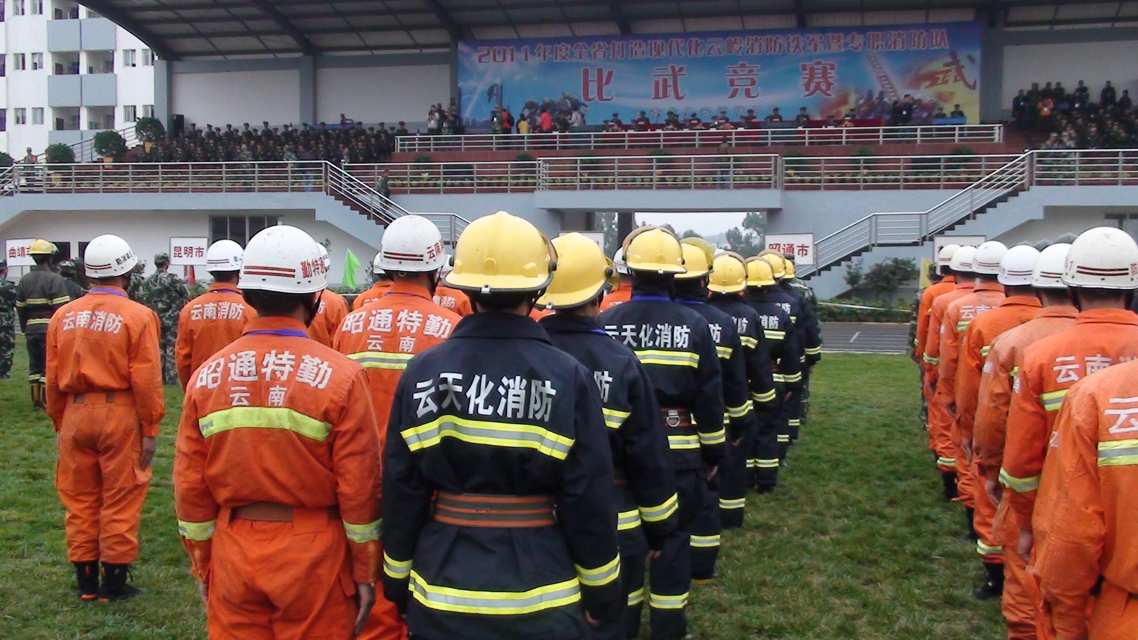 2011年10月16日至21日,云天化专职消防队一行10人,代表昭通市,在昆明小石坝阿拉乡省消防总队培训基地参加了云南省消防总队组织的全省公安消防部队云岭消防铁军暨专职消防队集中比武竞赛。来自全省16个地州市的17支公安消防现役队、16支专职消防队同台竞技,展开了一场高手之间的角逐厮杀。