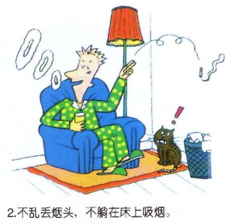 4、不乱扔烟头、不躺在床上吸烟。