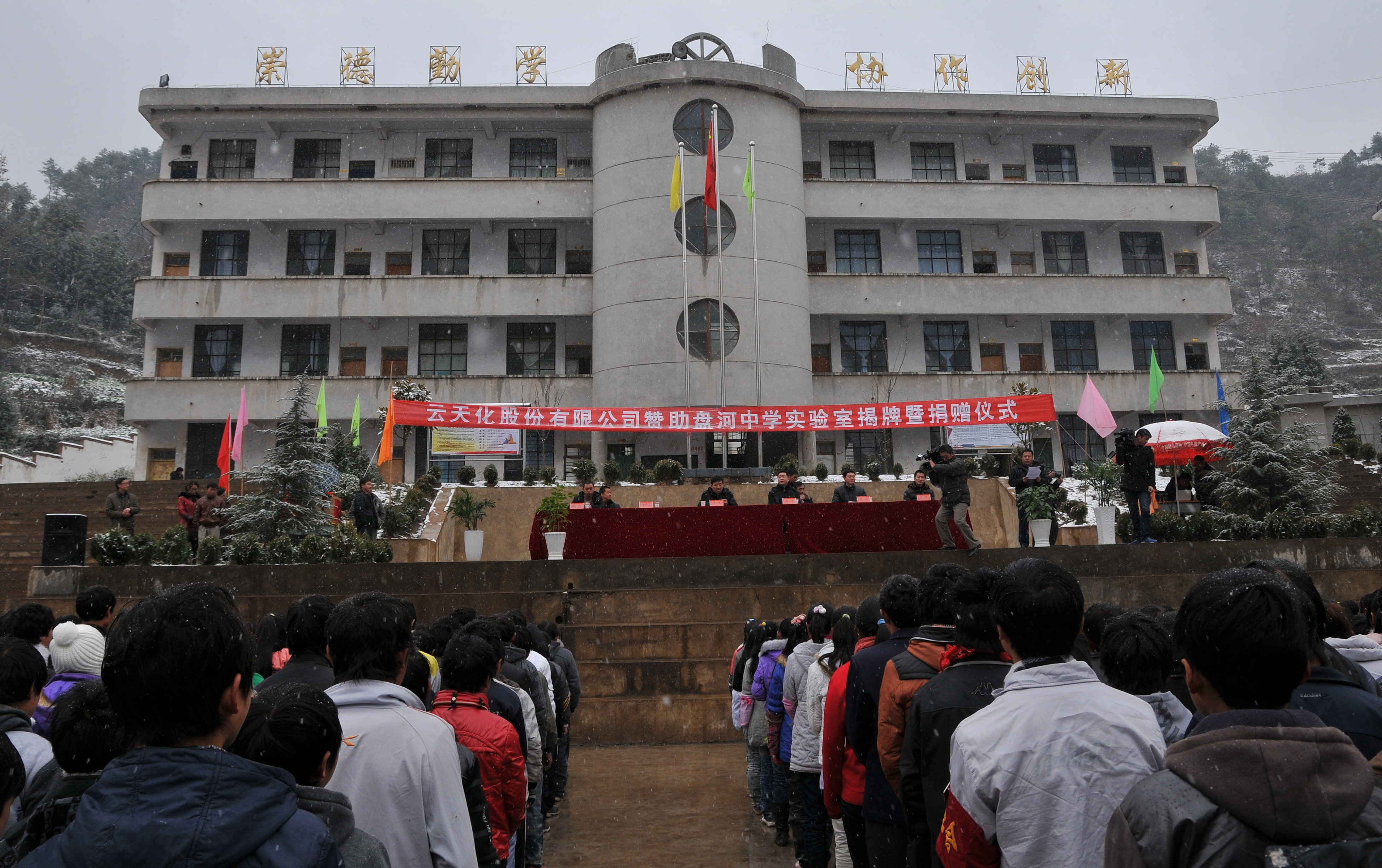据了解,盘河中学位于昭阳区城北33公里处的盘河乡,在校学生800余名,共12个教学班,任课教师36人,在本次校园建设项目中,公司利用盘河中学现有空闲教室,为学校新配备了一套化学、物理和生物实验室,并配备了相应的仪器和药品。项目的竣工结束了一直以来学校没有化学、物理和生物实验室及基本的实验教学仪器设备设施的历史,从此学生们可以在自己的学校动手做实验,也不用再到数公里外的其他学校借考实验。