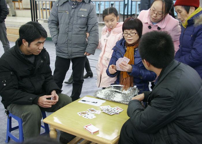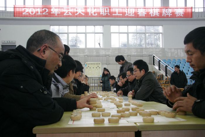 大年初二下午三点,公司迎新春棋牌比赛在公司体育馆举行,来自各单位的近百名员工参加了象棋、围棋、干瞪眼、斗地主、双扣等项目的比赛。参赛队员们聚精会神的应战比赛,旁边的观众也踊跃加油助威,经过一番激烈的比拼,最后各类别获奖选手逐一胜出。