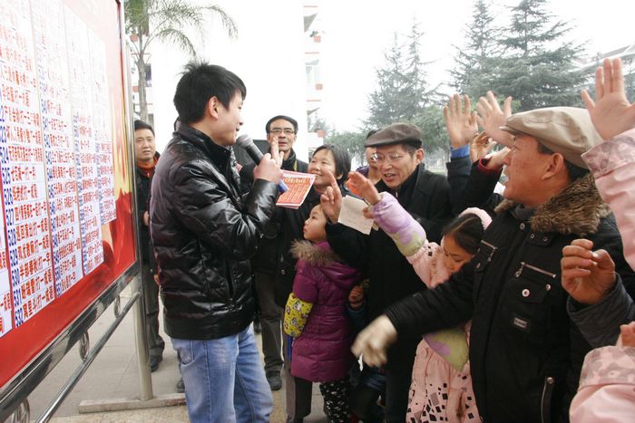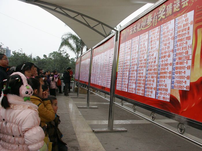 大年初三下午,在下沉式广场举行的公司迎新春猜谜活动更是热闹非凡,一排大红的展板上贴满了各类谜语,公司员工家属们早早的就在展板前聚集,相互商议讨论着谜底。当主持人宣布猜谜活动正式开始后,台下观众争先恐后举手作答,答对者欢呼雀跃,不仅可以展现自己,还可以获得一份精美的小礼品;没有答对的也毫不气馁,继续积极作答,上百条谜语不一会儿就被大家猜完。