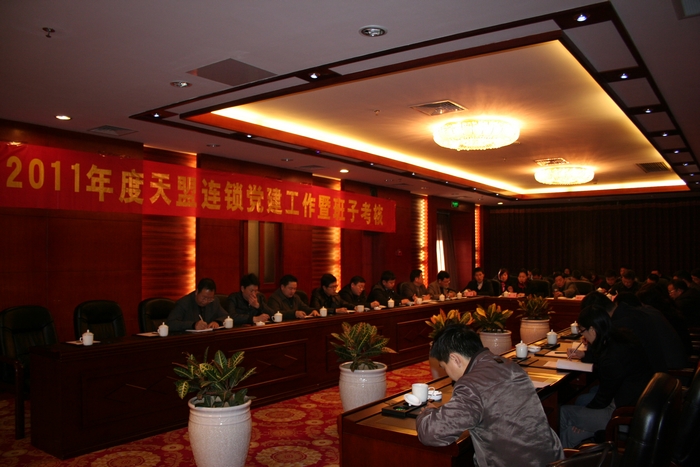 股份公司考核组成员,天盟公司领导班子成员、职能部门负责人、员工代表等39人参加了考核会。在考核会上,按照考核程序,考核组首先听取了天盟公司2011年度党建工作的情况汇报。党委书记邱崇党就加强组织建设、党风廉政建设、创先争优活动、群团工作等多方面取得的成绩和存在问题向考核组作了详细汇报。随后,考核组还分别听取了公司班子成员的个人述职。在完成相关考核程序后,考核组组织与会人员对班子成员进行了现场测评,并在干部、员工当中还选择了部分代表进行个别谈话。