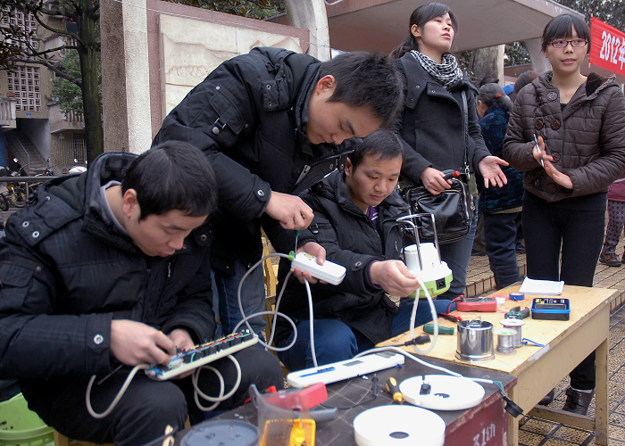 志愿活动持续3个多小时,青年志愿者们共为小区居民磨刀203把、擦皮衣132件、清理电脑22个、维修电器30件、熨烫衣物玩具115件、爱心赠书300余本,为希望小学捐献爱心用具100余件,兑换零钞5万余元、清洗键盘30余个。