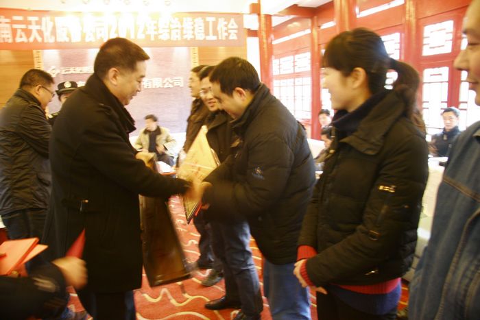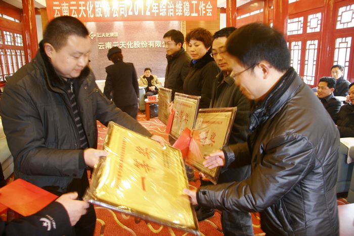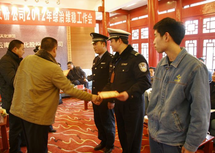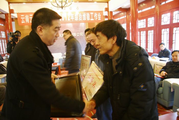 云天化中学、消防部获“综治维稳工作先进集体”一等奖,刘富云为他们颁奖